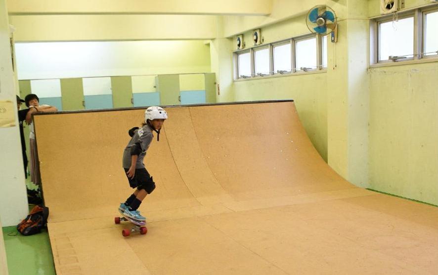 プール跡地では、スケボー体験やクライミング体験が行われ、流行のアーバンスポーツも楽しめました。