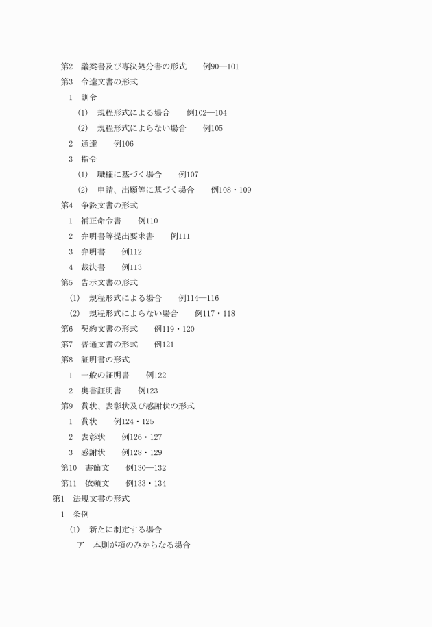 (1) 法規文書 次に掲げるものについて作成する文書