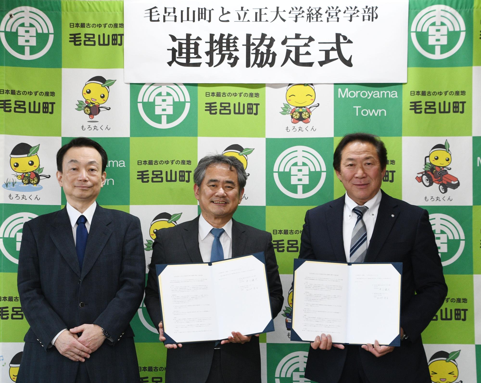 令和7年12月11日(木曜日)に立正大学経営学部の学部長 松村洋平様及び教授 杉原周樹様 にご出席いただき、地域活性化及び課題解決に係る連携協定式を執り行いました。