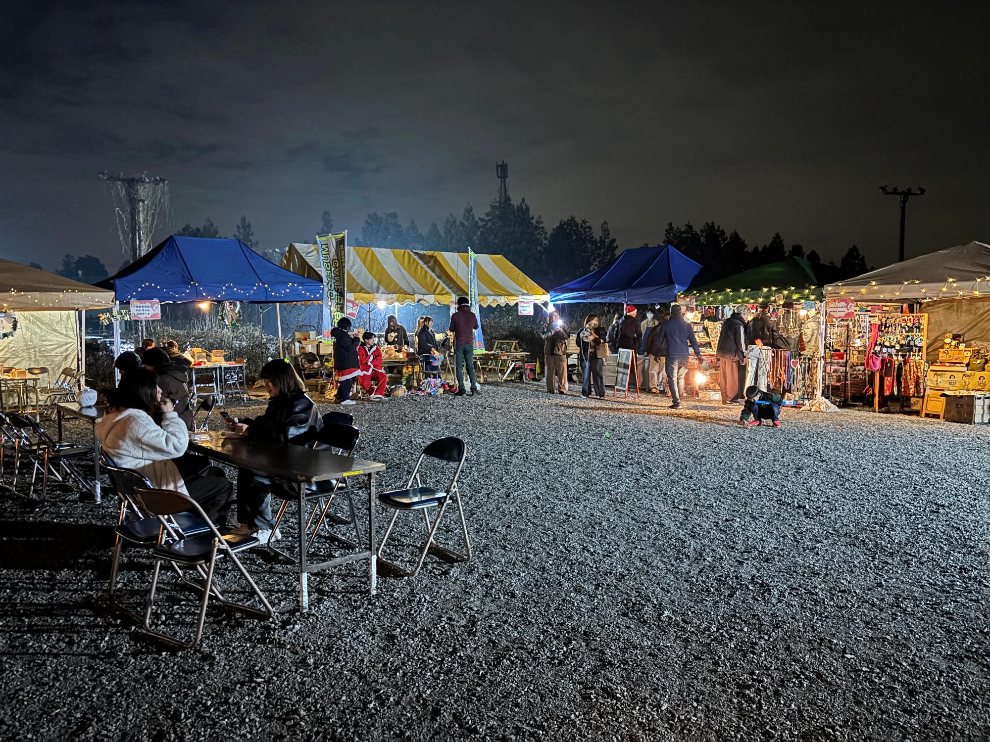 令和7年12月20日(土曜日)、西大久保の「らぶホルモン駐車場」で、焚き火を囲む癒しのクリスマスイベントが開催されました。西武文理大学中谷ゼミナールの学生提案で、第3回ビジネスコンテストに採択された地域活性化の一環で、今回で2回目の開催です。