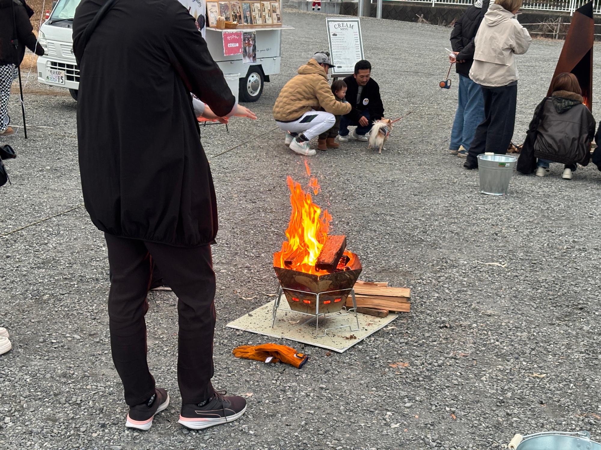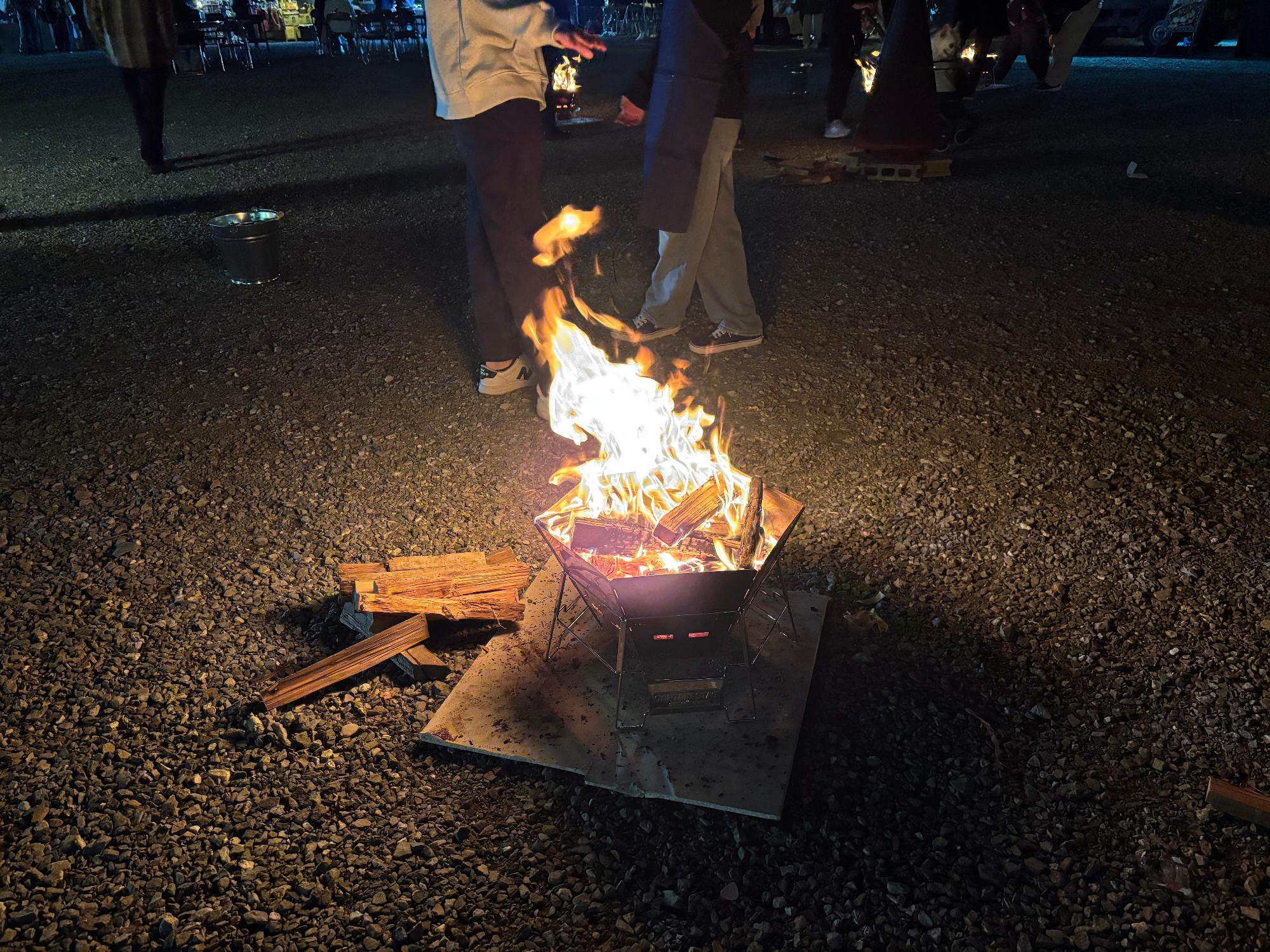イベントでは、周辺の学生によるステージパフォーマンスが披露され、盛り上がりを見せました。また、キッチンカーやクリスマスリース作りなどのワークショップ、ワンちゃんと一緒に楽しめるクラフトなど、参加者は焚き火の温もりと愛犬とのふれあいを楽しみながら、心温まるひとときを過ごしていました。
