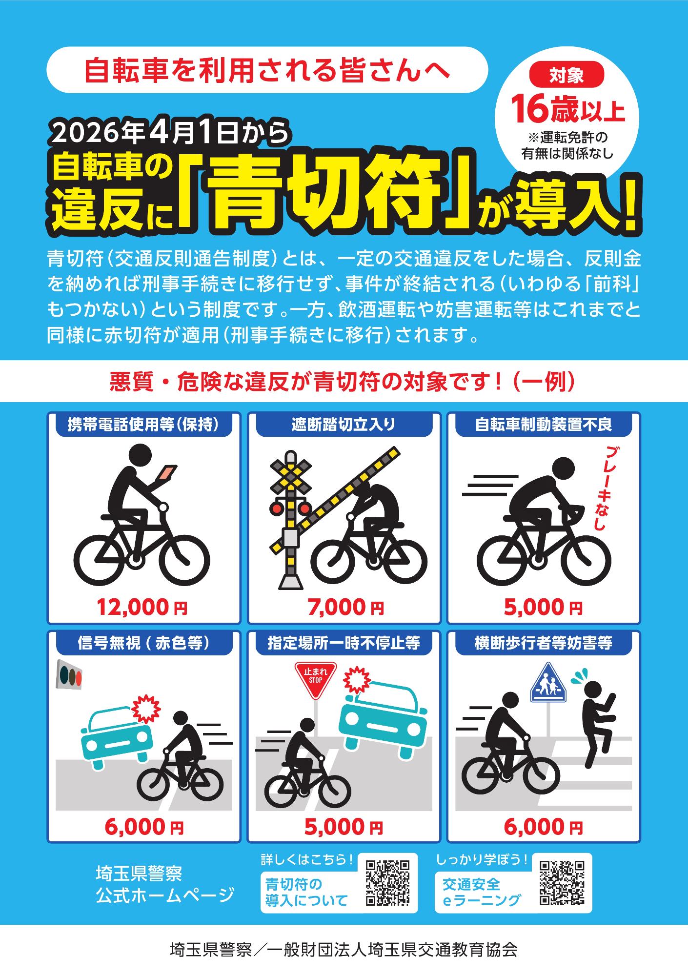 令和8年4月1日から、自転車の交通違反に「交通反則通告制度」(通称:青切符)が導入